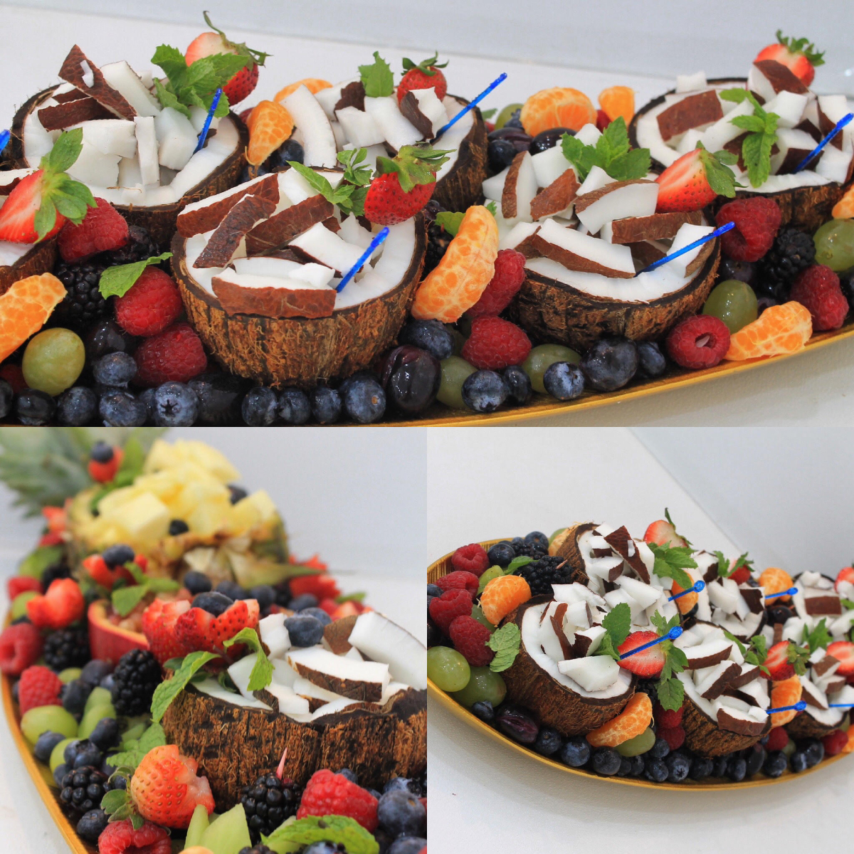 Luxurious Ceramic Plate With Fruit Salad in Coconut Bowls