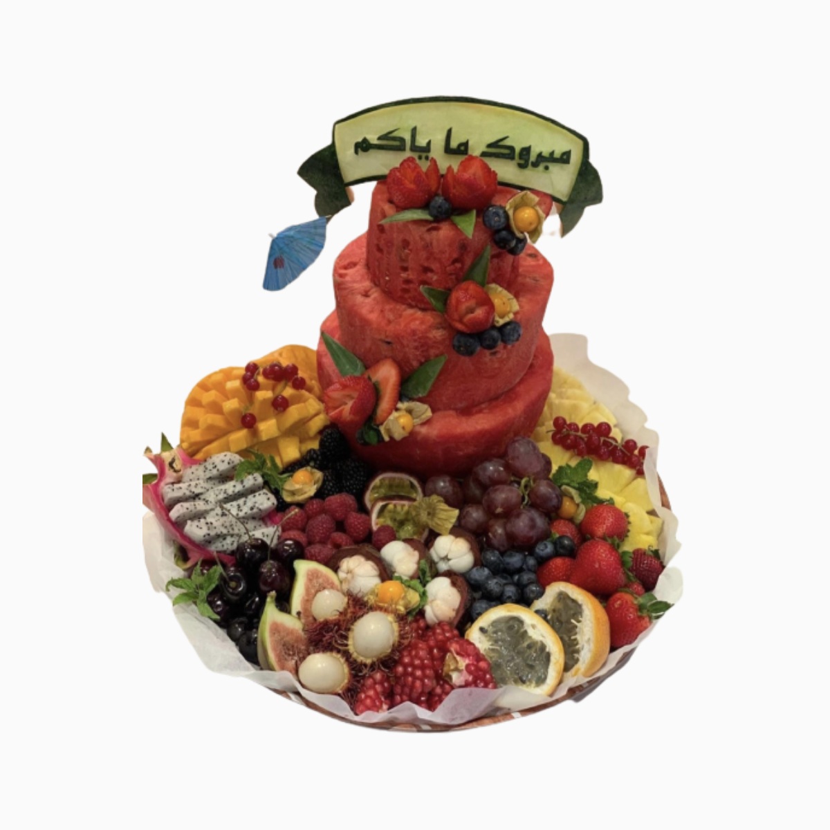 Three Layers Cake Of Watermelon Stuffed With Fresh Berries And Strawberries